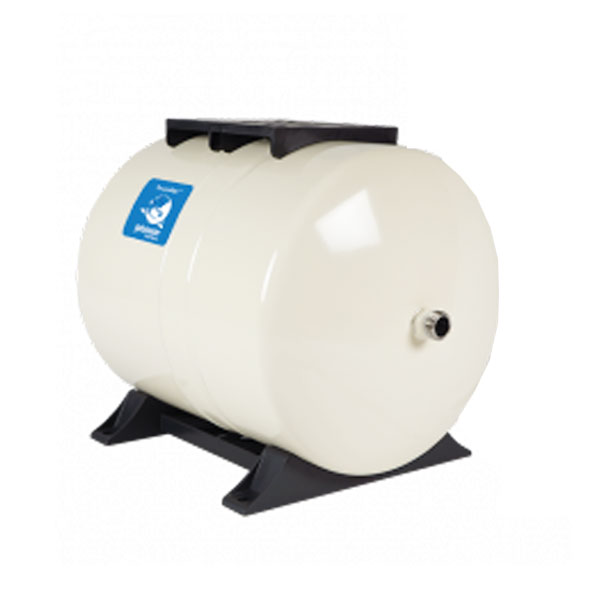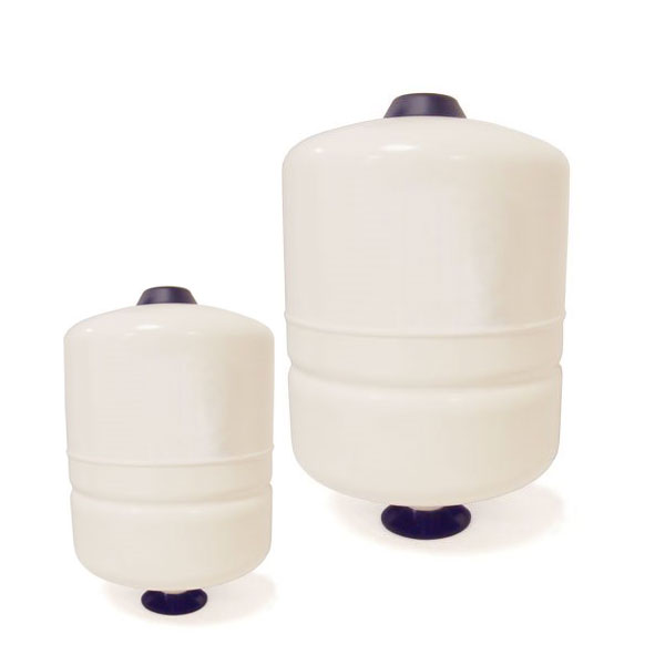 Application: Smooth pump operation. Ideally suited to a wide range of applications including booster systems, thermal expansion, irrigation systems and hydraulic hammer arresting. Constructed of a virgin polypropylene liner combined with an FDA approved high grade butyl diaphragm, held against the wall of the tank with a steel clench ring. The brass air valve, sealed by a threaded o-ring valve cap, prevents air leaks. Water enters the tank through a patented stainless steel water connection. The diaphragm and liner are reinforced for longer life. All internal parts are rounded to prevent piercing of the diaphragm in extreme conditions. The water connection uniquely provides a dual water / air seal ensuring a leak free and low maintenance vessel. On the exterior the almond-colored dual layer polyurethane paint finish provides hundreds of hours of UV and salt spray protection. Quality tested throughout the production process to ensure their structural integrity. Available in multiple capacity options, and vertical or horizontal configuration. For sizing advice, please contact our office for assistance. | |