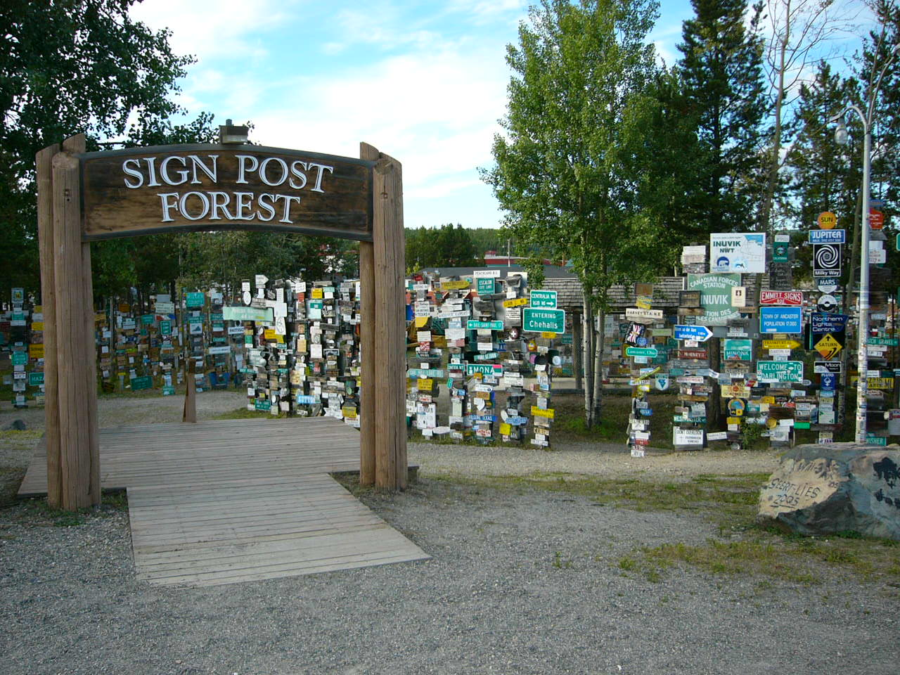 途經特斯林(Teslin)參觀原住民博物館,抵達屈臣湖參觀路標森林及北極光中心IMAX劇場