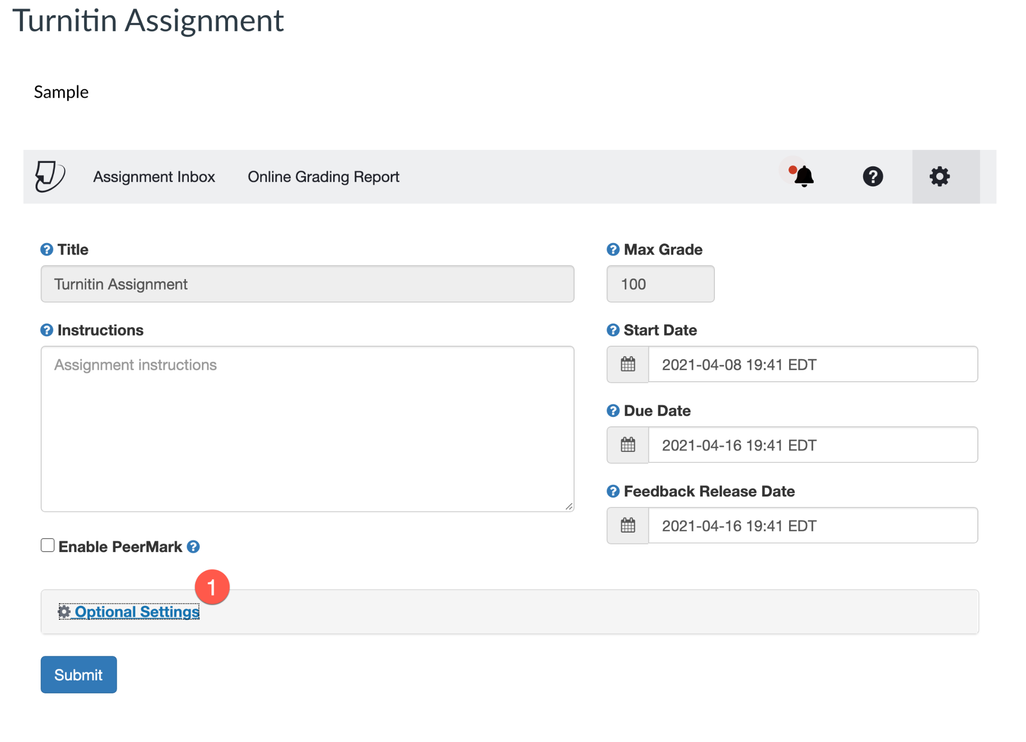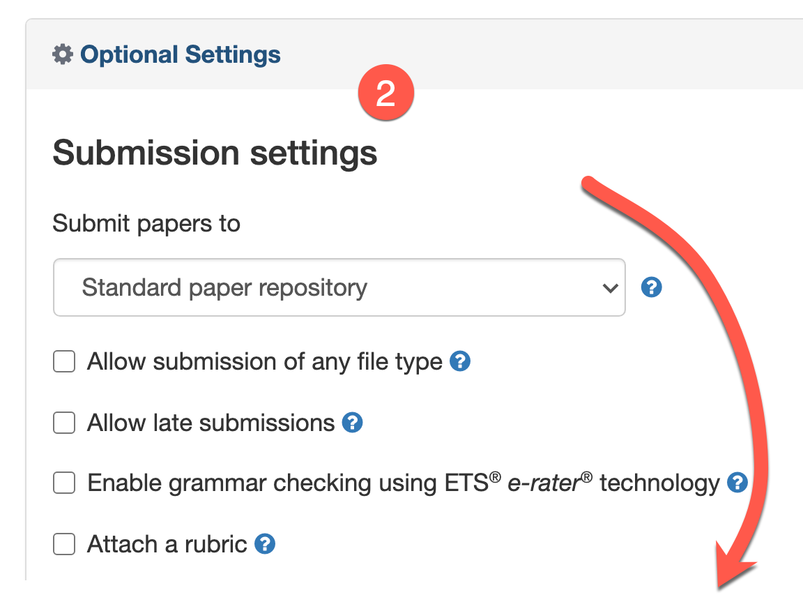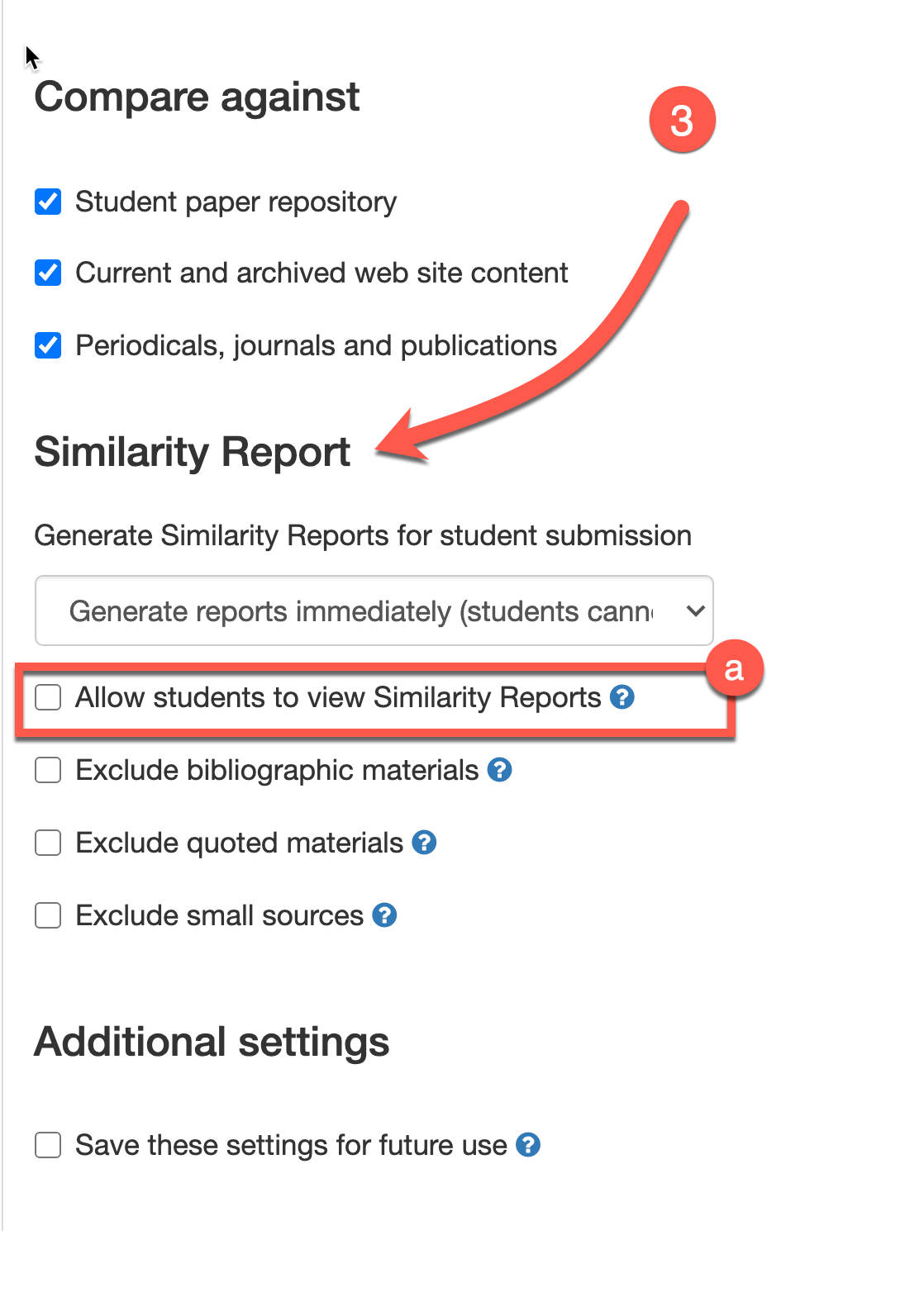 - Check the box “Allow students to view Similarity Reports” so students can see their reports.