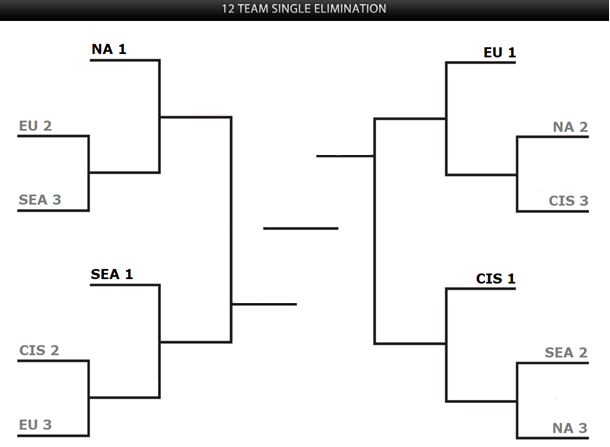 2.1.3. The International Tournament will use a Single Elimination bracket with the regional winners receiving a pass in the first round.