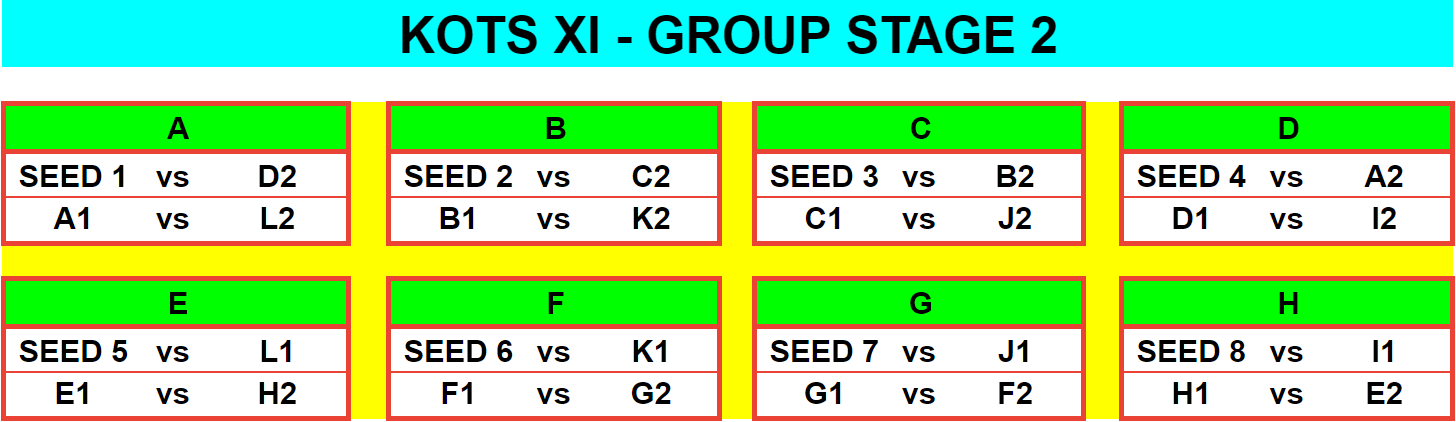 7.3.4.1 This stage will consist of 8 groups of 4 teams playing in a double elimination, best of 3 format. 7.3.4.2 The groups for this stage will be assembled by random draw and will contain the following teams: