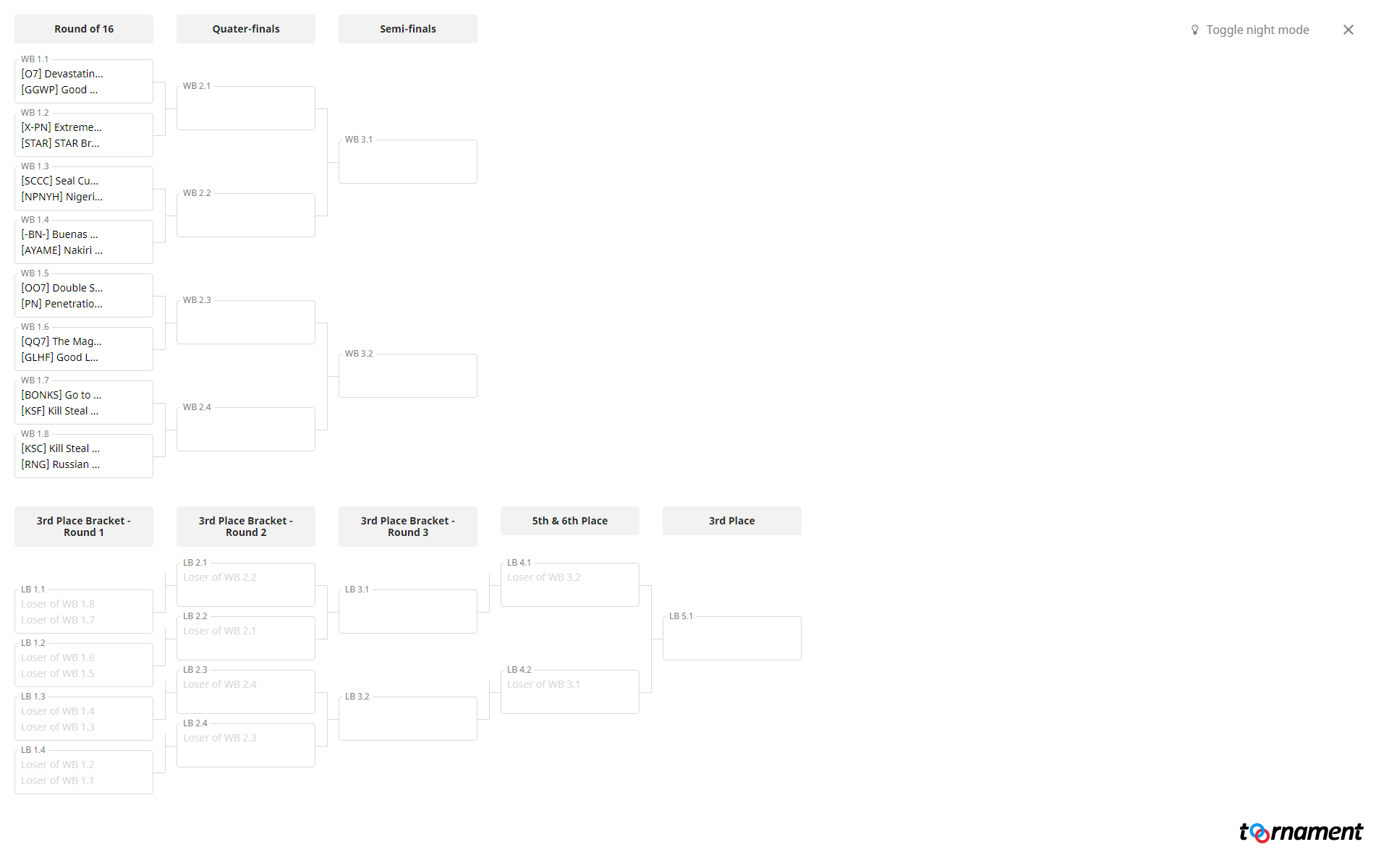 2.4.1. All servers will be using a tournament organizer, such as Challonge or Toornament, to run their tournaments.