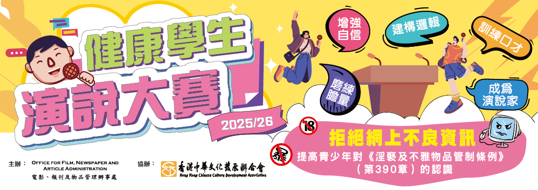 文聯會再度獲電影、報刊及物品管理辦事處邀請,協辦「健康學生演說大賽(25/26學年)」。活動將於 2025 年 9 月 至 2026 年 4 月進行,受眾為全港小四至中六學生,內容包括到校演說工作坊、中小學粵語演說比賽,費用全免。8 月下旬將發信至全港中小學校宣傳。 | |||||||||||||||||