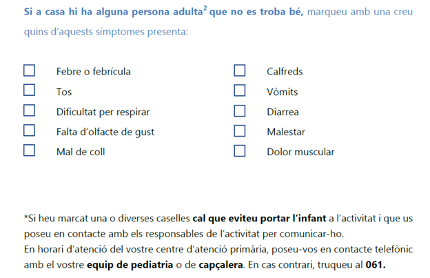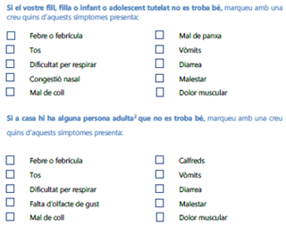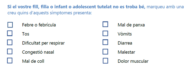 Les famílies disposaran d’una llista de comprovació de símptomes (veure l’annex 1).