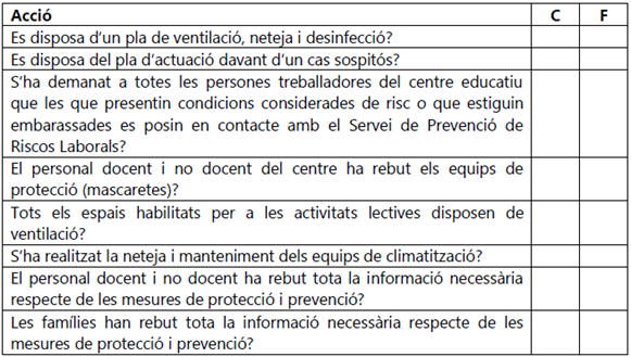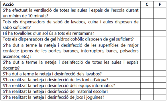 17.4. Annex 4: Llista de comprovació per a l’obertura de centres educatius a l’inici de curs