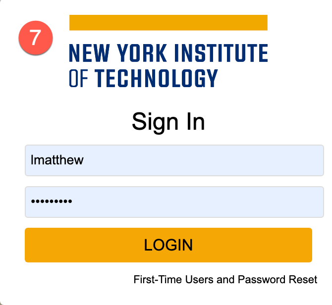 - Next, the New York Tech portal window will open. Login with your credentials.