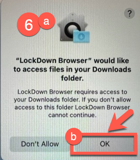 - Once downloading the software a pop-up window will appear. (If you do not see this pop-up, go to launchpad and click on LockDown Browser icon (Globe with lock.)