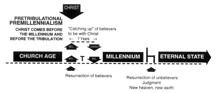 [14]14. Kjo pikëpamje e para-mundimit, shpesh është referuar si pikëpamja para-mundimore e rrëmbimit, përderisa ata që i përmbahen kësaj pikëpamjeje, shpesh i referohen kthimit të Krishtit për herë të parë dhe të dytë në mënyrë të fshehtë për të nxjerrë të krishterët nga bota, me termin “rrëmbim” (nga Lat. rapio “të mbërthesh (me duar), të heqësh diçka me forcë nga një tjetër, të marrësh me vete”). Kjo pikëpamje është diskutuar në kapitullin 55, fq. 1112–1114 dhe 1132–1135.