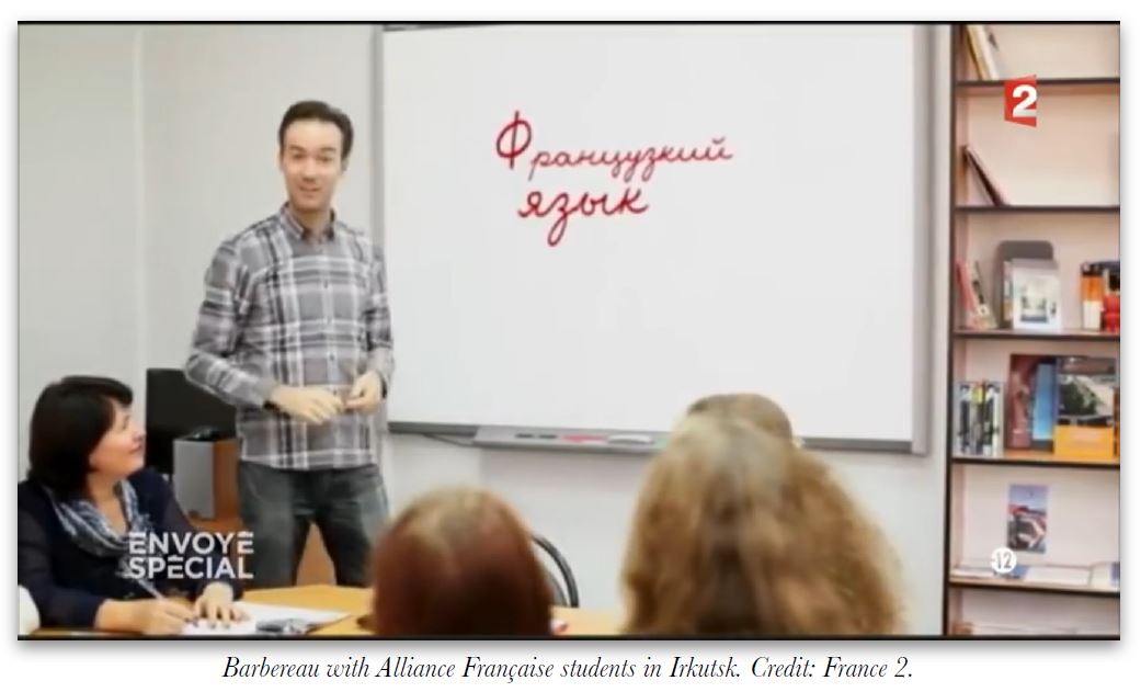 Following Barbereau’s detention and trial, scathing attacks against him flourished in local newspapers, suggesting another rationale for his arrest. By all accounts, Barbereau had been doing his job well and had become increasingly well-known in Irkutsk through outreach events and local TV interviews. His friendly, ever-smiling figure was apparently oblivious to the backdrop of intense anti-Western rhetoric. This made him a threat in the eyes of those who routinely spread anti-Western sentiment in the local media. Newspaper articles depicted the Alliance française, a central pillar of France’s cultural diplomacy worldwide, as a nest of spies and a hidden intelligence outpost. In a particularly strident piece dated Sept. 2, 2016, Barbereau himself is presented as a foreign agent on a mission to corrupt Russia’s youth and destabilize the country, no less, as well as a spokesman for “immoral and perverse European ideas”.[11] The charge of corrupting Russia’s youth echoes an incident preceding Barbereau’s arrest, during which an FSB agent had asked him if the Alliance française “influenced Russian youth”.[12]