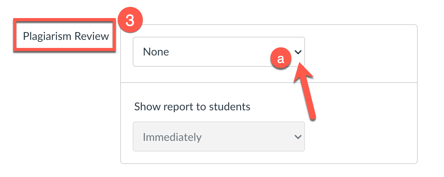 - Make sure to review all your assignment settings before scrolling down to “Plagiarism Review” on the left side. (Note: If you did not select Text Entry and/or File Uploads in Step 2, the Plagiarism Review box will not appear!)