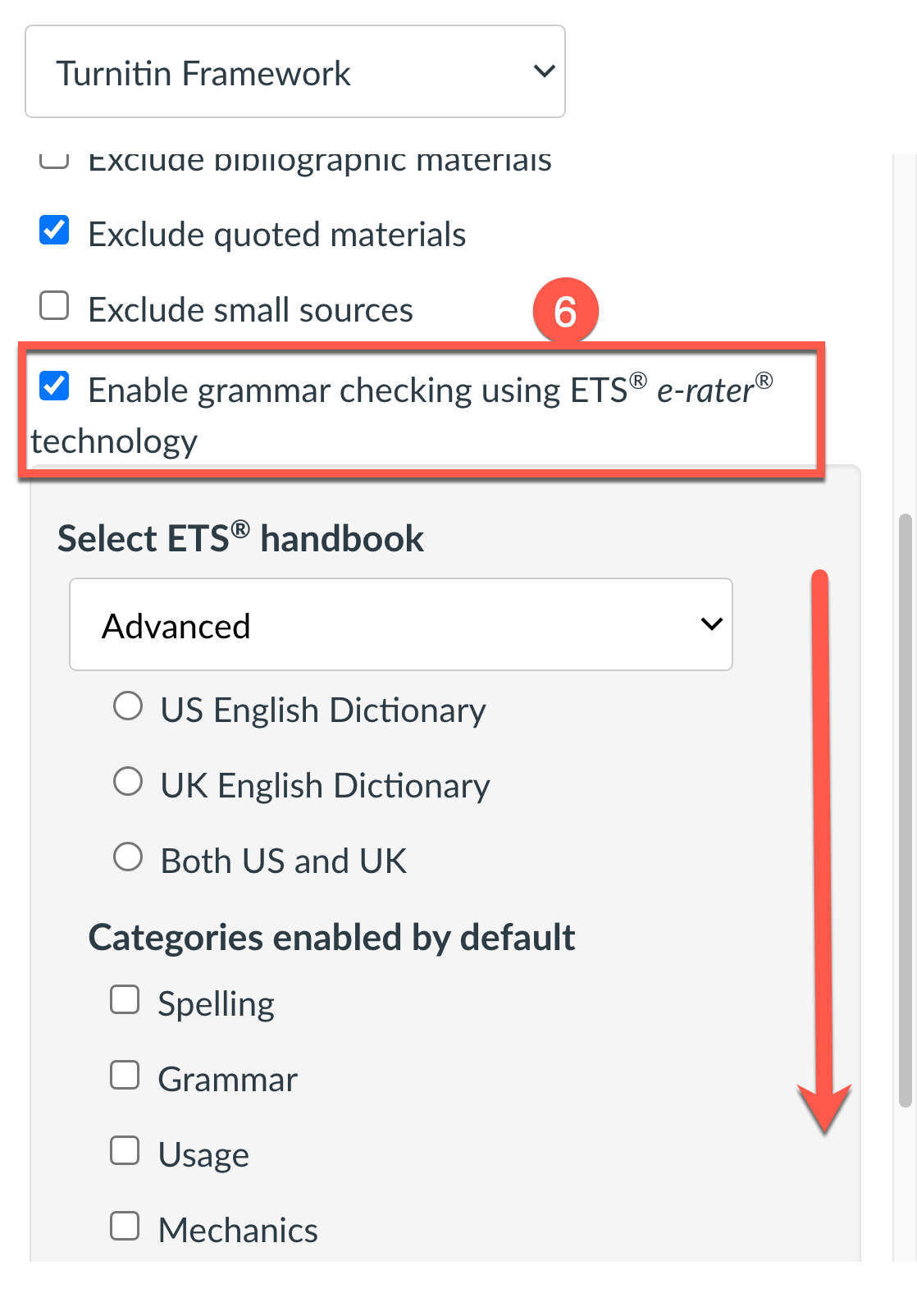 - Select Turnitin Framework from the drop down menu.