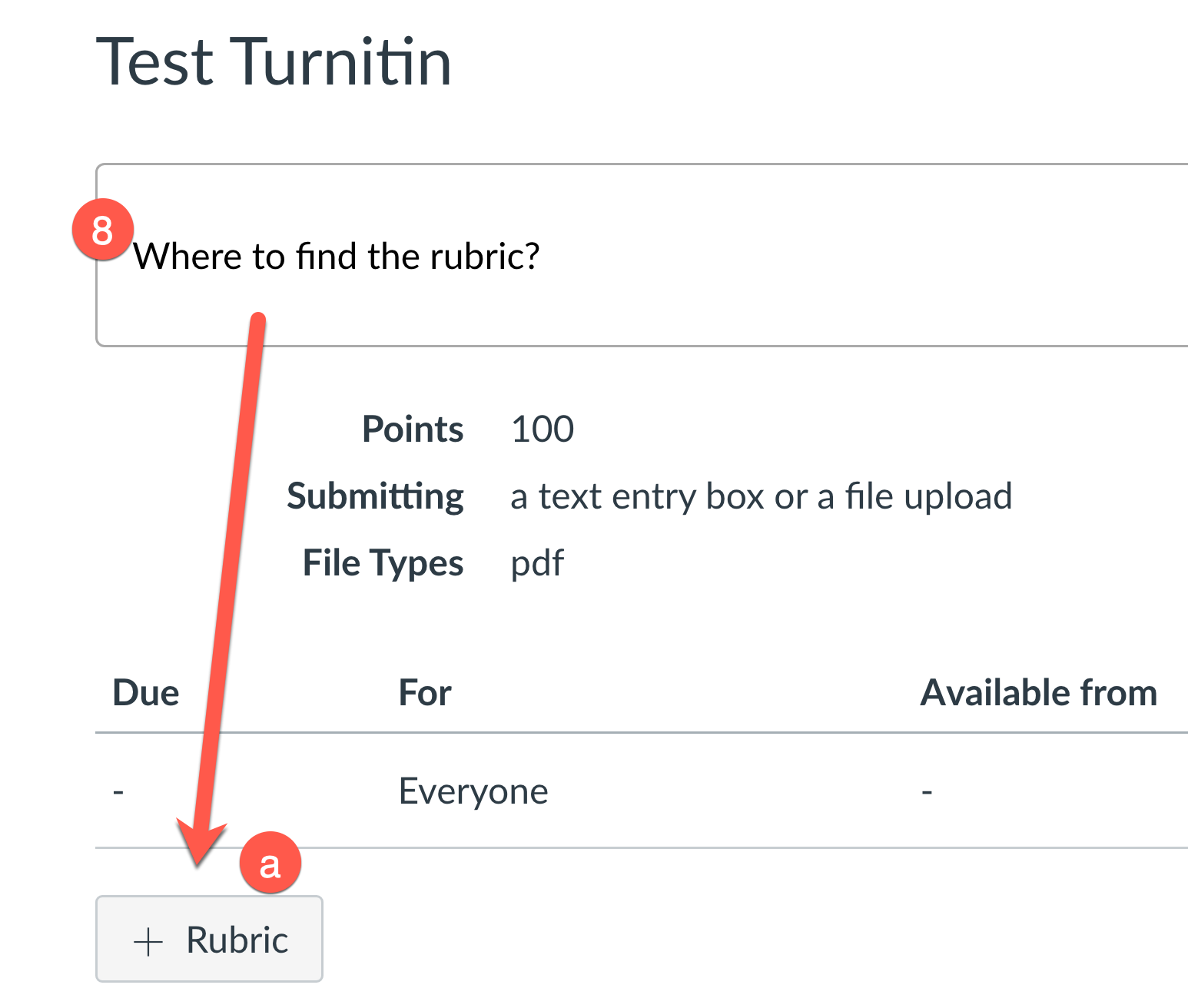 - Add a rubric? It is easy to add a rubric AFTER the assignment is created. Go back to the assignment link, open the assignment and look toward the bottom.