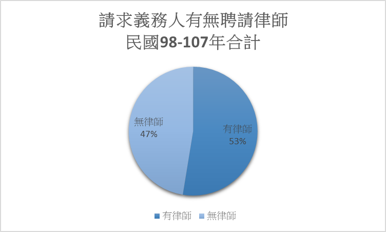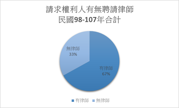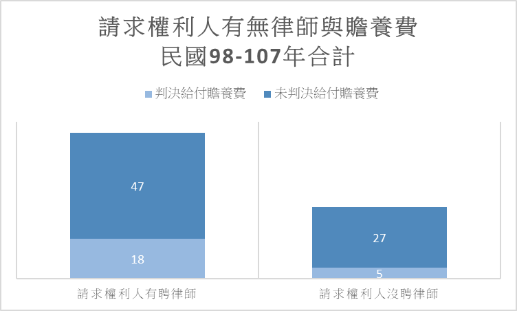 另外是否受到法扶幫助也有高度關聯,但因為判決數過少,仍不可忽視可能是因為一造辯論且無書狀造成之影響。
