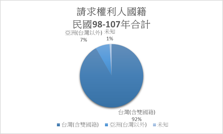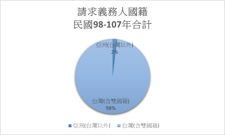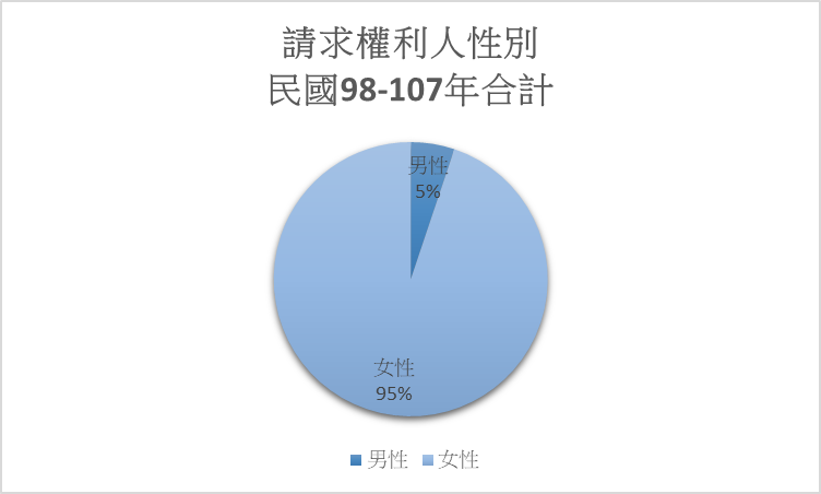 綜觀整體,只有民國99年法院判決給付件數大於未判給付件數,但即便如此,判決給付之比例也十分接近,其他年的判決給付比例都小於未判決給付比例。在民國100年和民國107年判決給付的比例是0,推測可能原因是因為這兩年請求案件數本身就比其他年少。