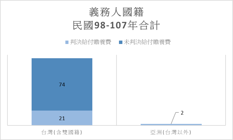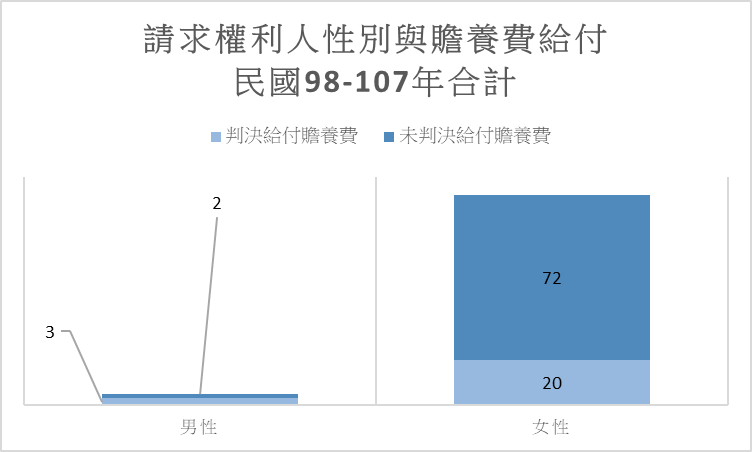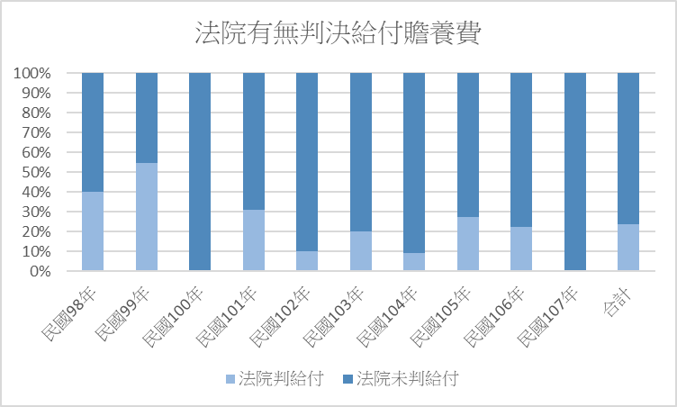 綜上所述,贍養費之勝訴率低,僅有24﹪勝訴機率,且以北部地方法院為贍養費請求判決數之最大宗。