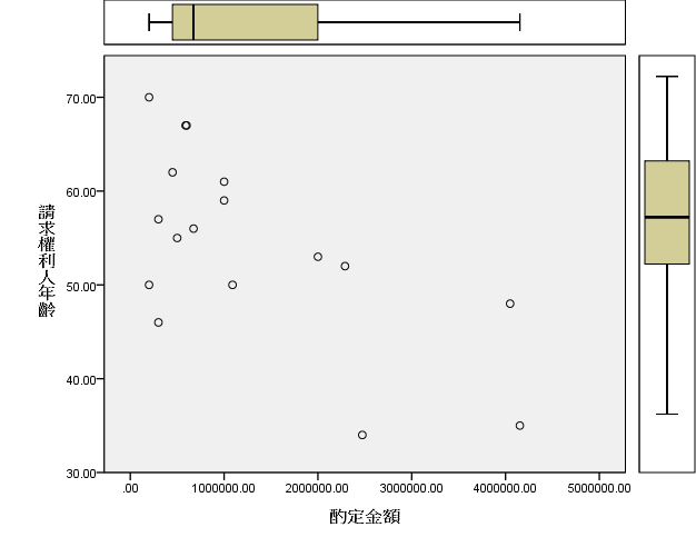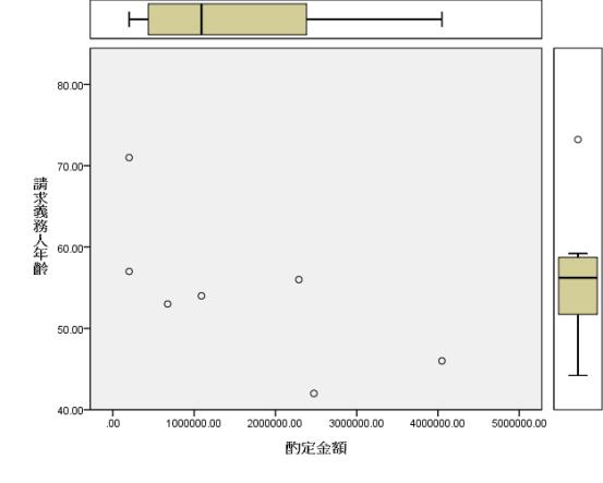 遺漏值較多,有效資料較少,但可看出義務人年齡與法院酌定之給付能力關聯小。