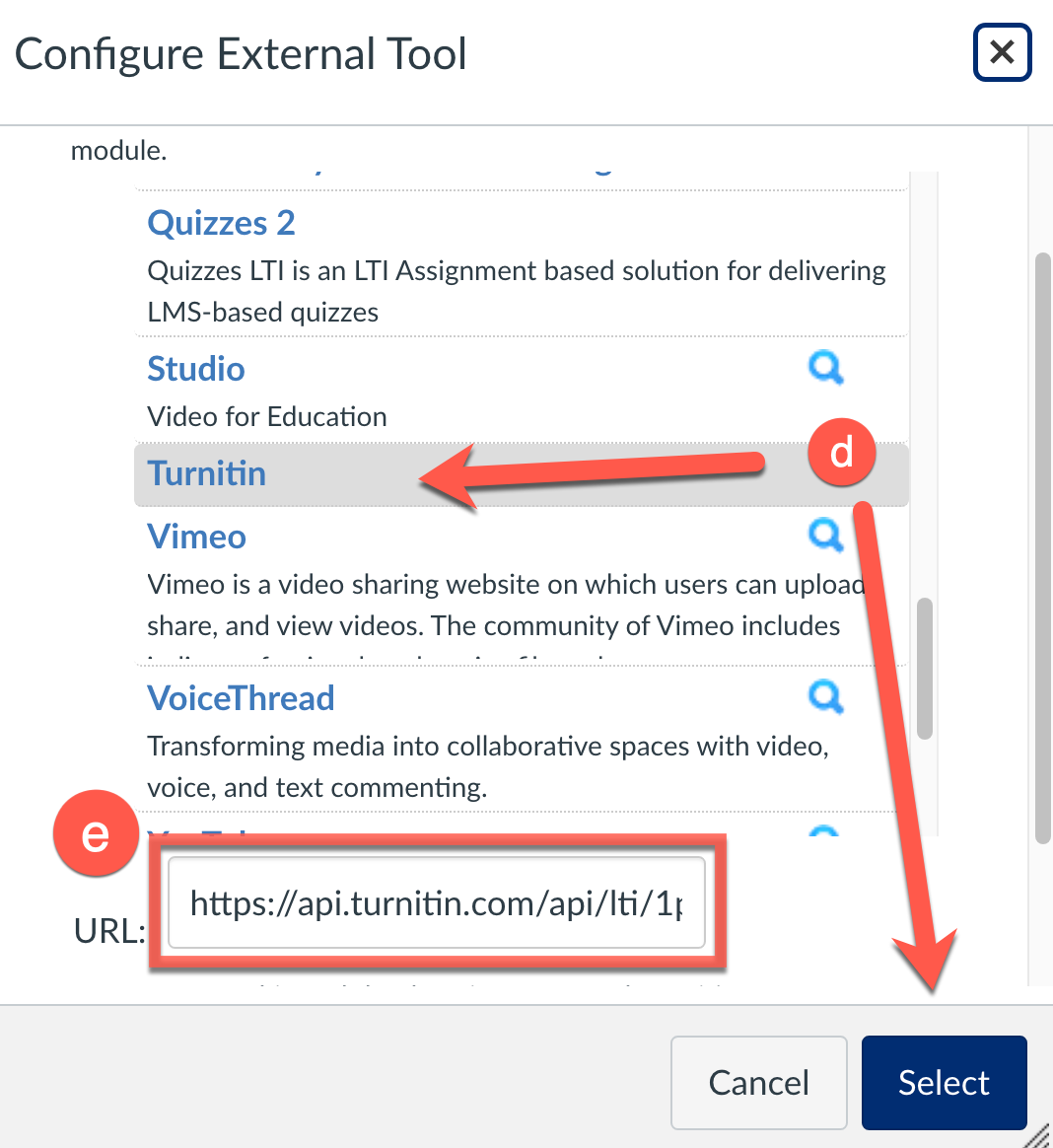 - Scroll down. Select Turnitin and click Select.