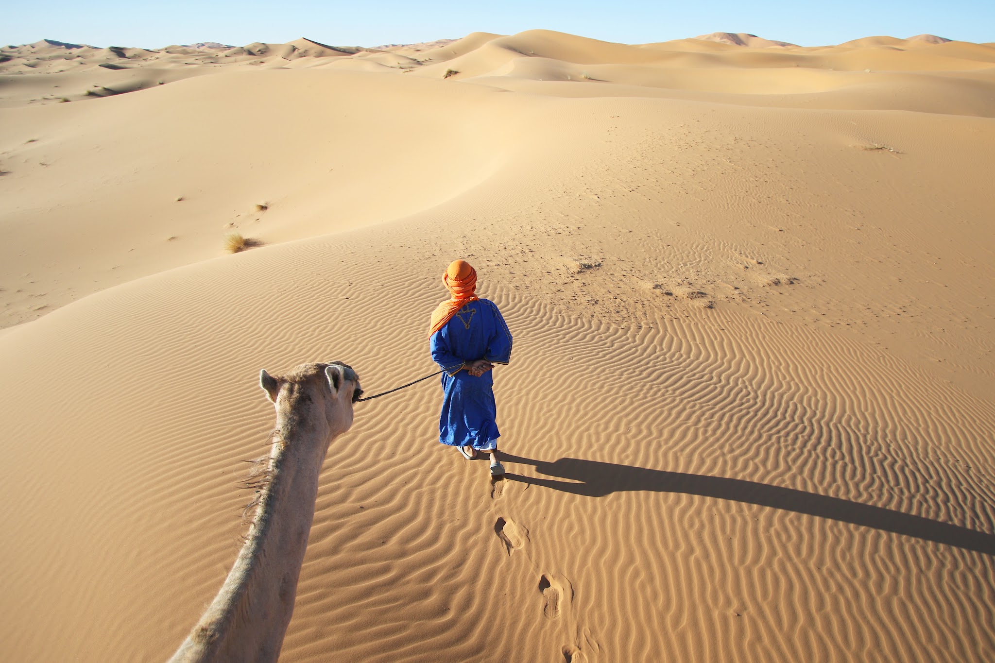 Morning As a group, we will drive towards the picturesque Sahara Desert that continues to capture the imaginations of people around the globe. At a small town on the edge of the desert, we’ll eat an early lunch and board camels and embark on a journey deep into the epic dunes of the Sahara. *Enroute you will have the option to stop for a 4x4 Jeep ride through the dunes (optional adventure experience)