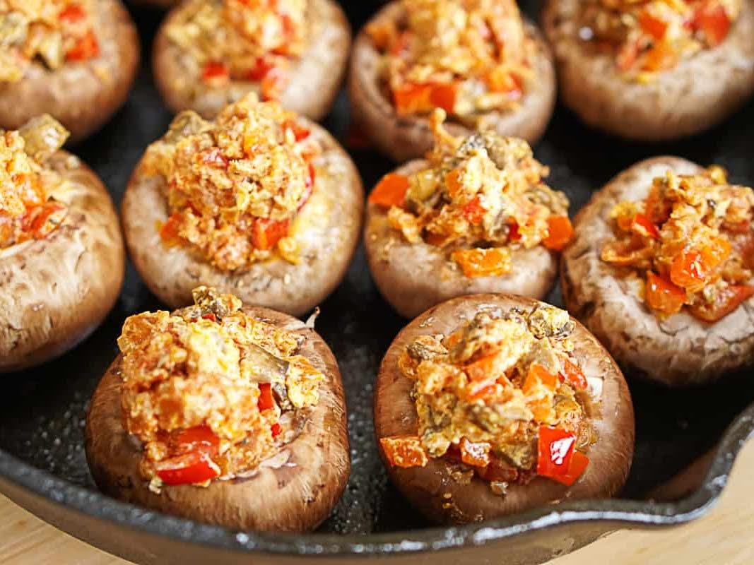 - Gently spoon the chorizo and breadcrumb mixture into the mushroom caps to create little mounds