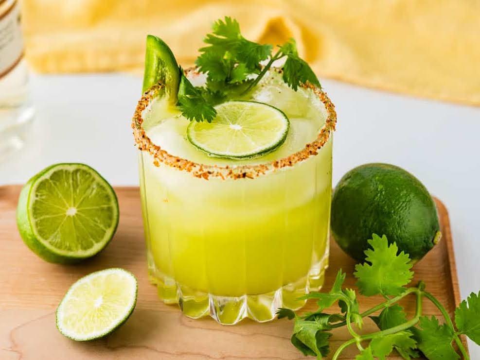 - Fill glass with ice, pour in the margarita mixture over the rocks