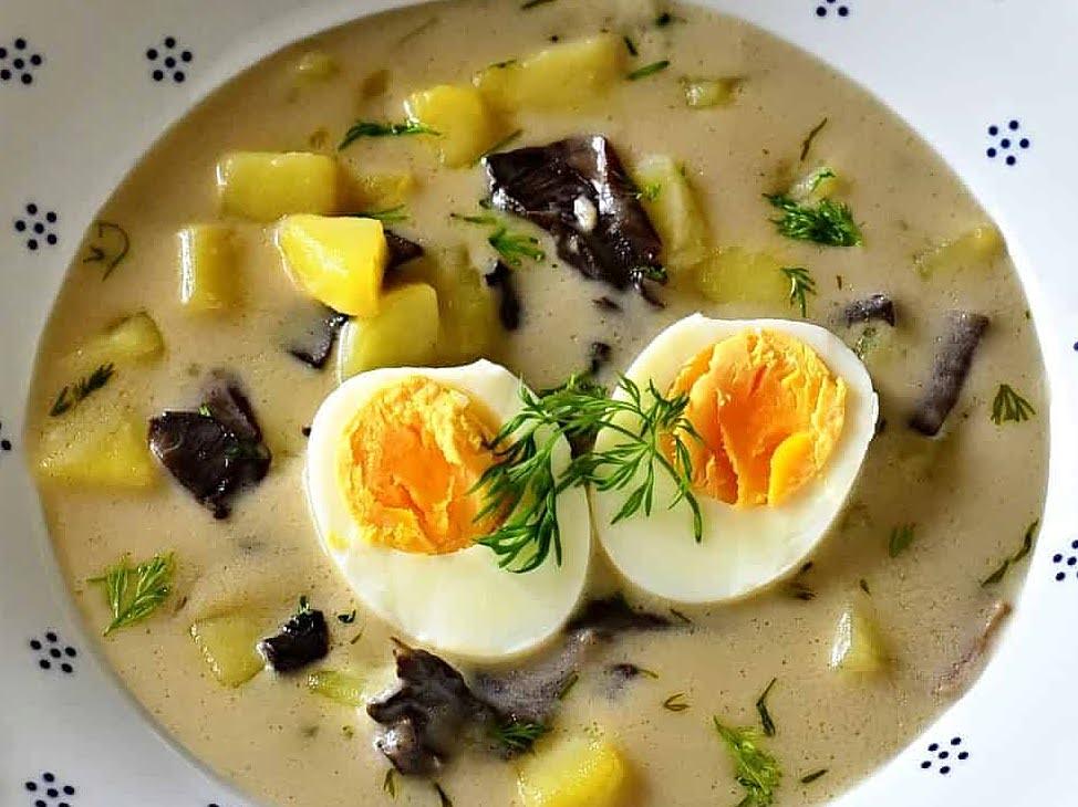 - Garnish each portion with half of a soft-boiled egg and a sprig of dill on top