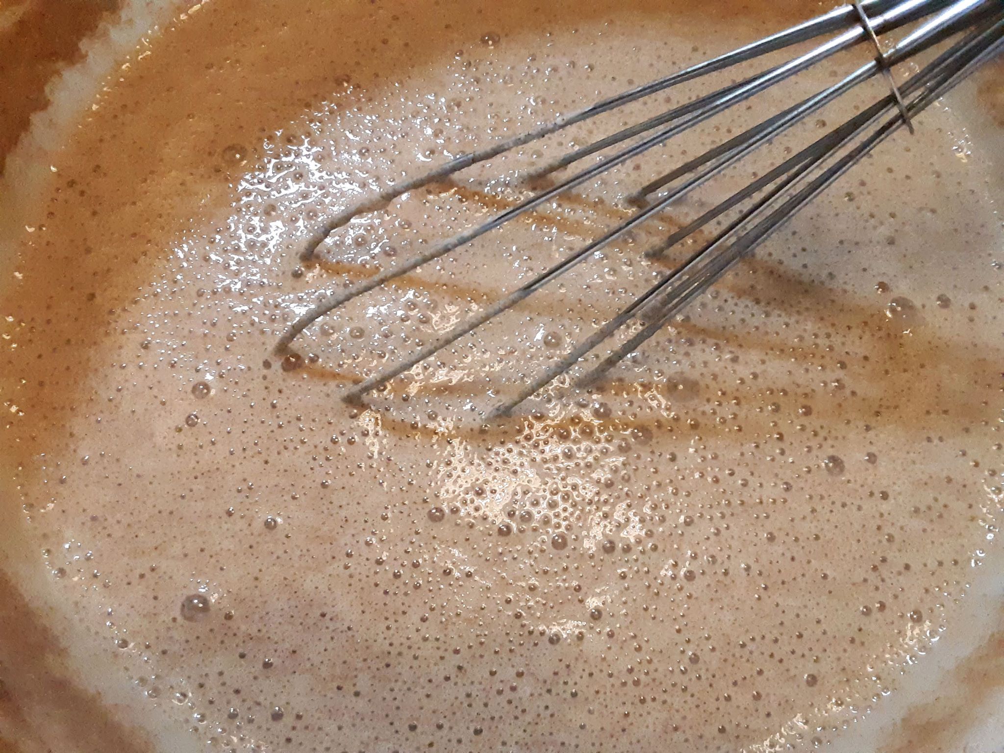 - Add water, stirring or whisking until smooth